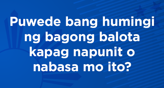19. Puwede bang humingi ng bagong balota kapag napunit o nabasa mo ito?
