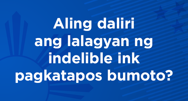 20. Aling daliri ang lalagyan ng indelible ink pagkatapos bumoto?