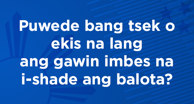 8. Puwede bang tsek o ekis na lang ang gawin imbes na i-shade ang balota?