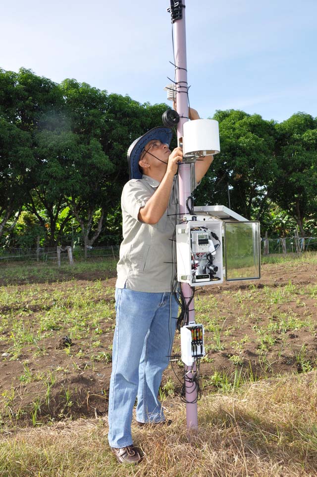 Called the field monitoring system (FMS), it is capable of automatically measuring air temperature, relative humidity, solar radiation, rainfall, among others – at an interval of one hour! This permits the scientists to establish patterns and weather elements behavior in a scale of hours.
