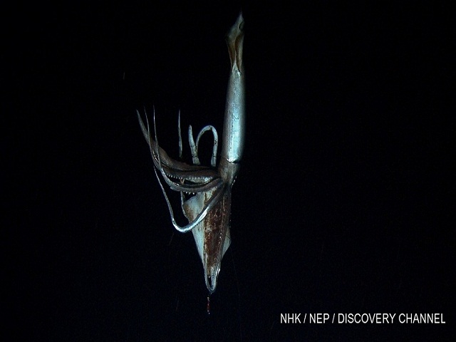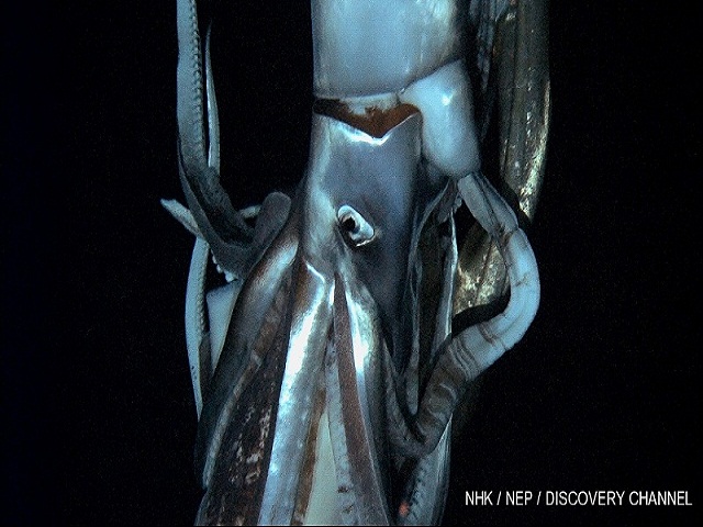 This marks the first time the giant squid has been photographed in its natural habitat. Discovery Channel