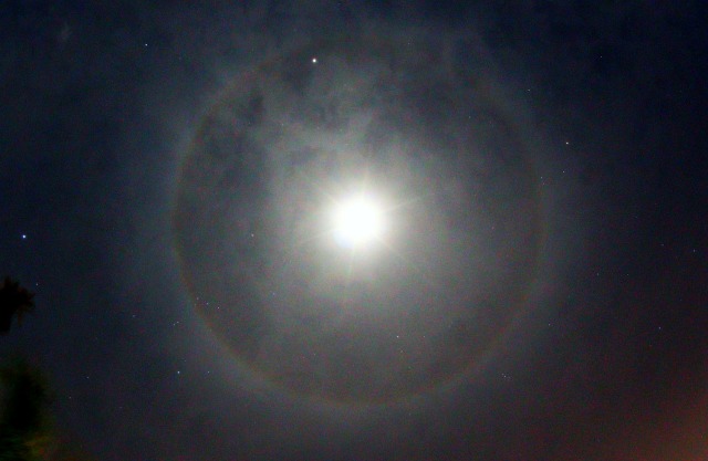 A halo around the moon, such as the one that occurred Monday night, is traditionally thought to be a portent of rain.