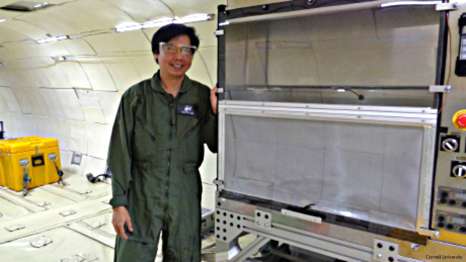 The team, in four flights launched from Houston, filmed how sizzling oil would splatter while the plane made parabolic maneuvers to create short periods of partial weightlessness.