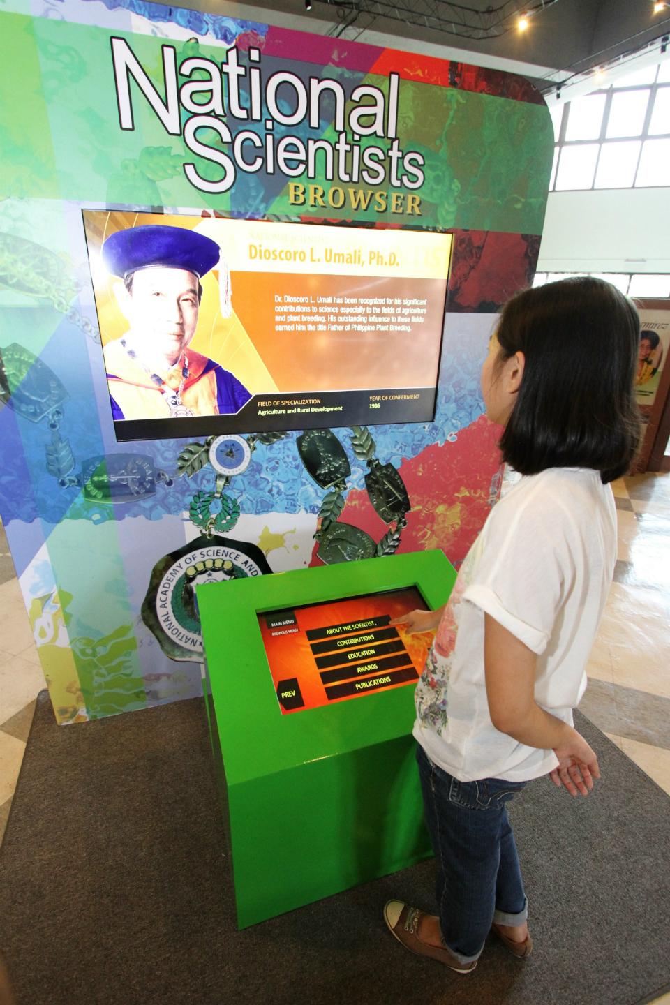 The National Scientists Browser lets visitors explore the life, works and contributions, and awards of 41 Philippine national scientists via touchscreen computers.