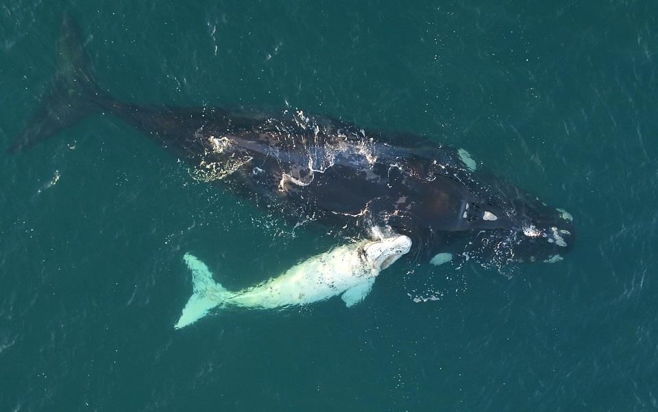 Researchers spotted the baby white whale while using a drone to conduct aerial surveys of southern right whale populations off the coast of Western Australia.