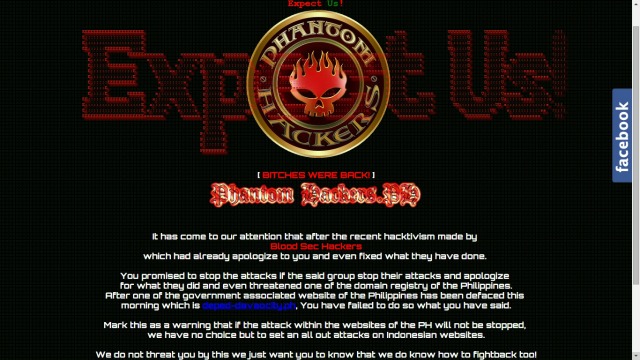 Over the weekend, pro-Philippine Blood Sec Hackers defaced at least one Indonesian site, after it supposedly attacked Philippine websites including that of the Department of Education in Davao.