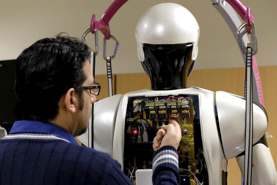 Engineer works on Surena 3 humanoid robot in a lab at Tehran University