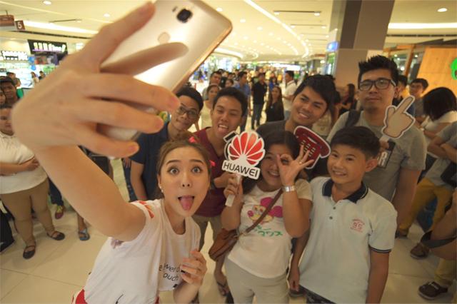Mall-goers at SM Megamall and SM North EDSA were treated to a surprise when they found MYX VJ Sunny Kim roaming the hallways, taking selfies with people. The phone she used to take these photos was the Huawei GR5.