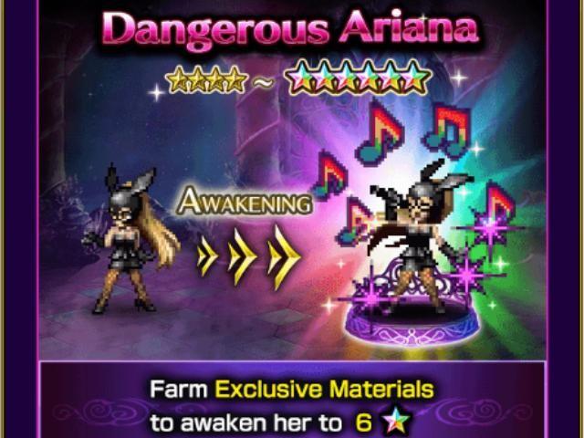 The update, known as Dangerous Woman Tour, allows players to recruit the heroine by completing its special event stage on Easy difficulty. Like other summoned units, Dangerous Ariana grows in power as she levels up, and can become a 6-star character.