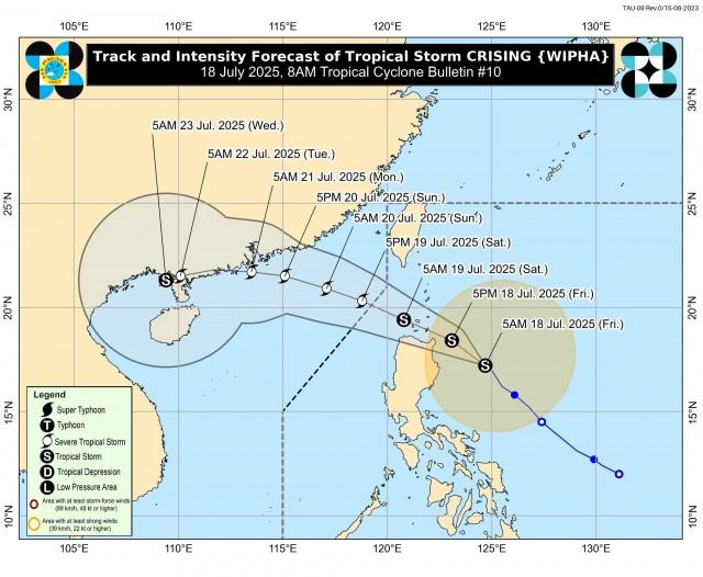 Crising was last located 250 kilometers east of Tuguegarao City, Cagayan.
