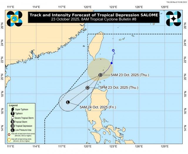 “SALOME is forecast to move generally southwestward throughout the forecast period due to the High-Pressure Area over mainland China,” PAGASA said.
