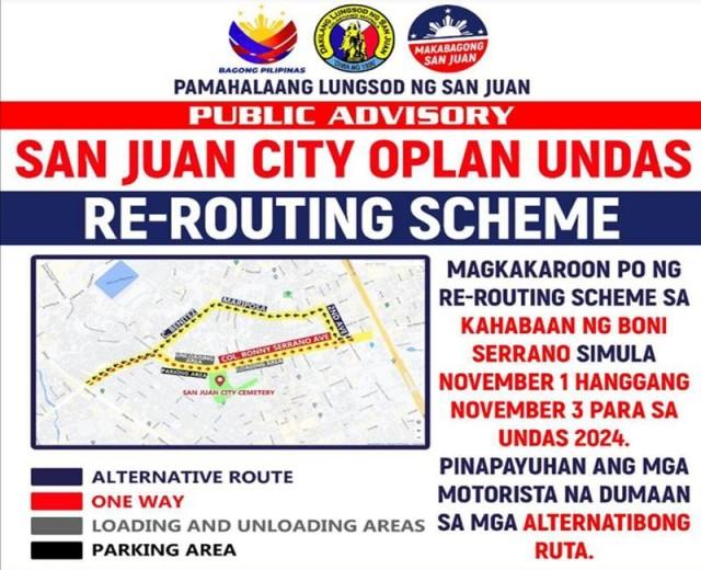 ManilaRoad closure and re-routing near Manila South Cemetery from Oct. 31 (12:01 a.m.) to Nov. 2 (12 a.m.).