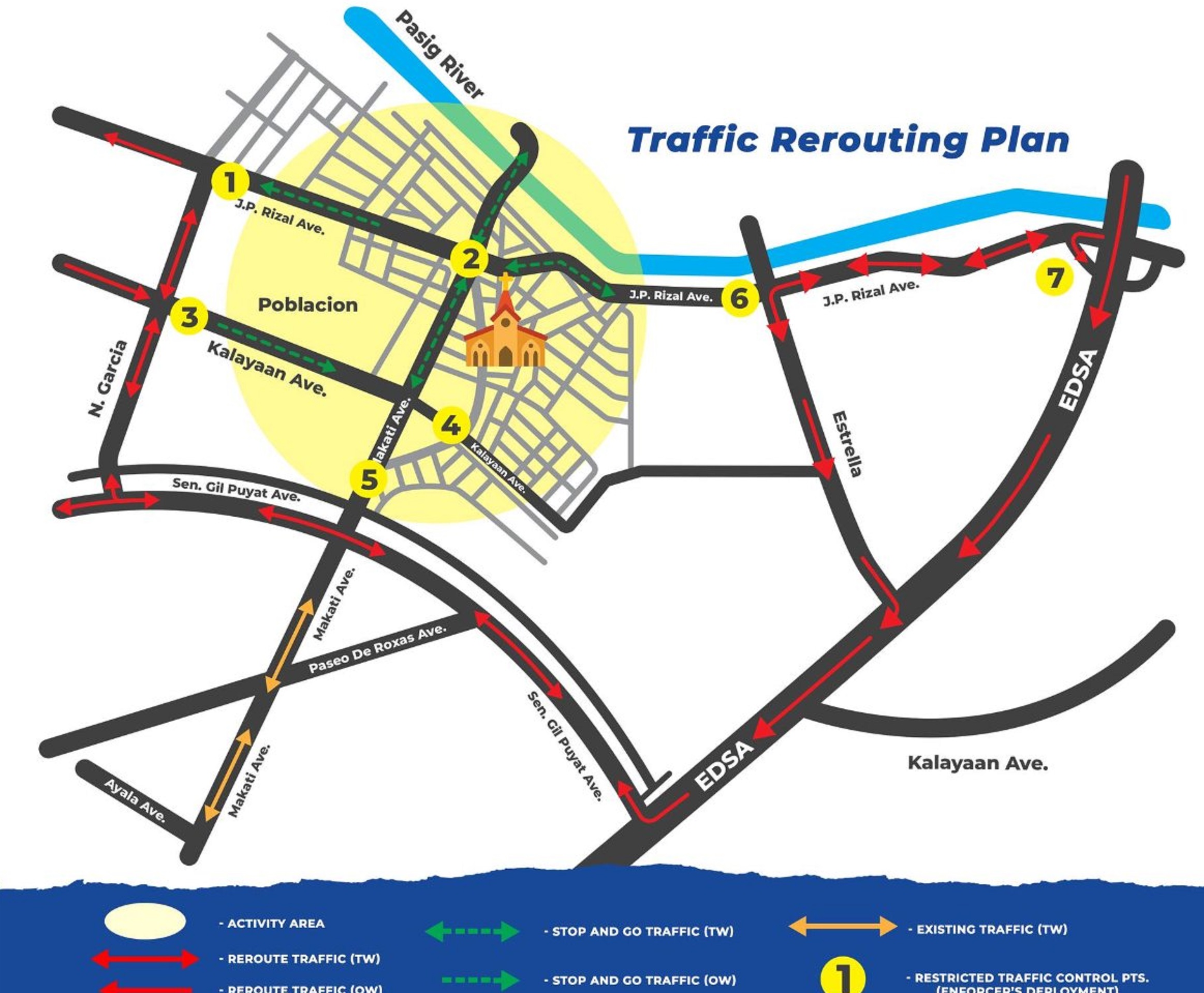 Makati City’s Public Safety Department on Saturday announced a Holy Week traffic rerouting and road closure plan in Barangay Poblacion from April 13 to 20, 2025.