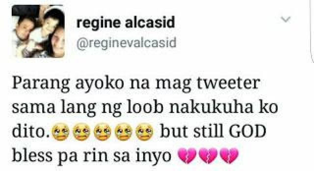 @reginevalcasid Last tweet. I'm still a fan but maybe it's time to let go. Bye