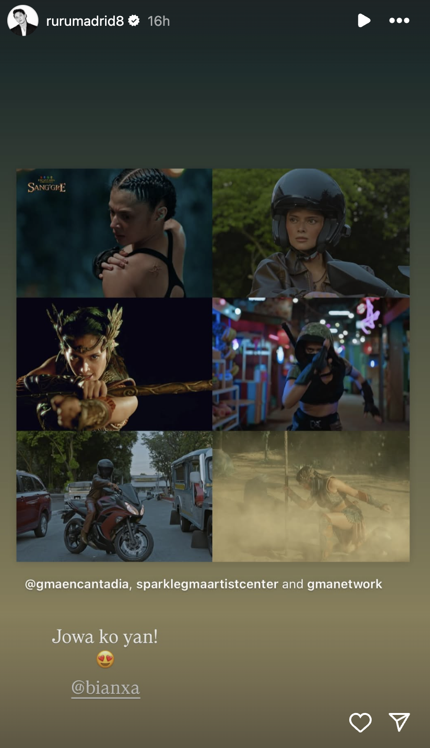 The official account of GMA Encantadia dedicated a post to Bianca on Thursday, creating a six-panel collage of some of the actress' bad-ass scenes and said "Abangan si Bianca Umali bilang SANG'GRE TERRA sa #Encantadia Chronicles #Sanggre!"