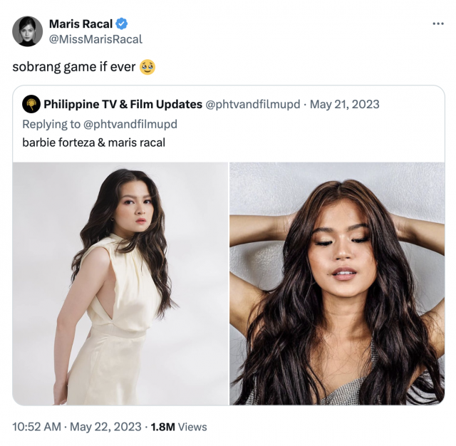 It didn't escape Maris, who quote-tweeted the original post and said, “sobrang game if ever.”