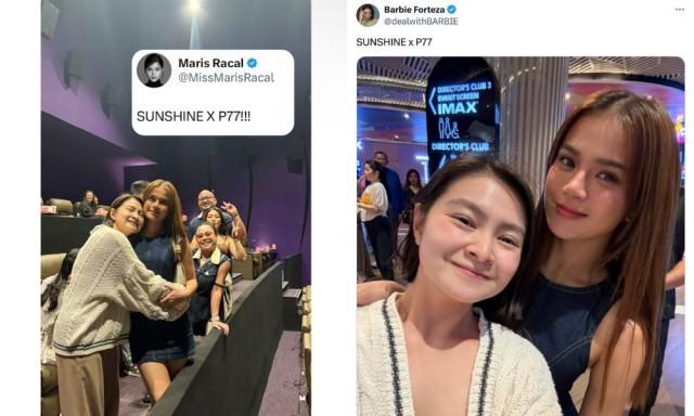 The two are headliners in movies that are still showing in cinemas — Barbie in "P77" and Maris in "Sunshine" — but instead of having the usual competitive attitude, the actresses are going all-out with their support for one another. Truly a fresh and refreshing take, if we may.