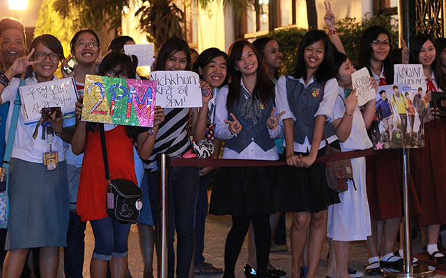 Avid Pinoy fans wait for the arrival of their favorite S. Korean group outside the press con venue. (Photo: Analyn Perez)