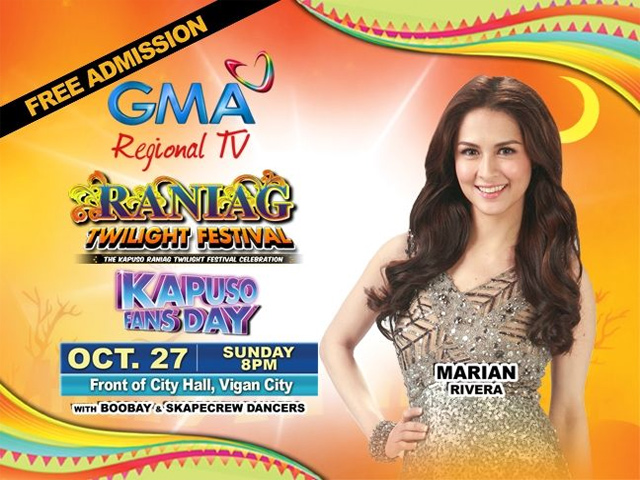 Meanwhile, the 4th Raniag Twilight Festival just gets bigger and brighter as the Kapuso Primetime Queen Marian Rivera makes her way to Vigan on October 27, Sunday, to mingle with her supporters via a Kapuso Fans’ Day to be held in front of the Vigan City Hall at 8pm. Prior to this trip, Marian has already made waves in the cities of Cebu, Davao, Cagayan de Oro, Iloilo, Batangas, Lucena, Pangasinan, Nueva Ecija, Tagbilaran, GenSan, Naga, Dumaguete, and Bacolod—areas where she notably received phenomenal audience turnouts.