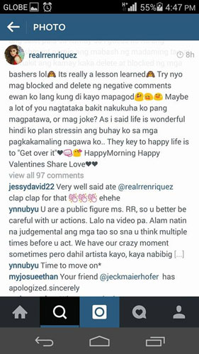 “Sa mga bashers relax lang kayo, life is wonderful marami pang pwedeng gawin sa buhay, hindi lang pang ba bash???? Yes nagkamali kami and nag sorry na kami so its time to move on??