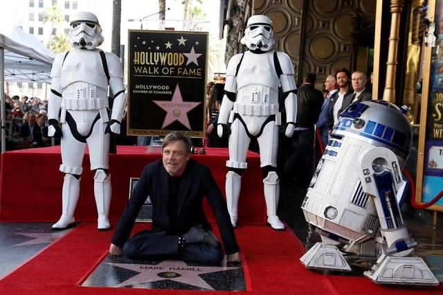 LOS ANGELES - Flanked by two Storm Troopers, "Star Wars" actor Mark Hamill received a star on the Hollywood Walk of Fame on Thursday with the enthusiasm and humility that has endeared him to fans four decades after his first turn as Luke Skywalker.