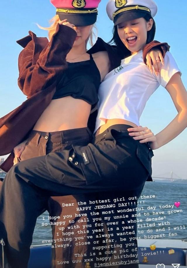 On Instagram stories, Rosé shared an adorable snap of her and Jennie wearing sailor hats with the ocean in their background.