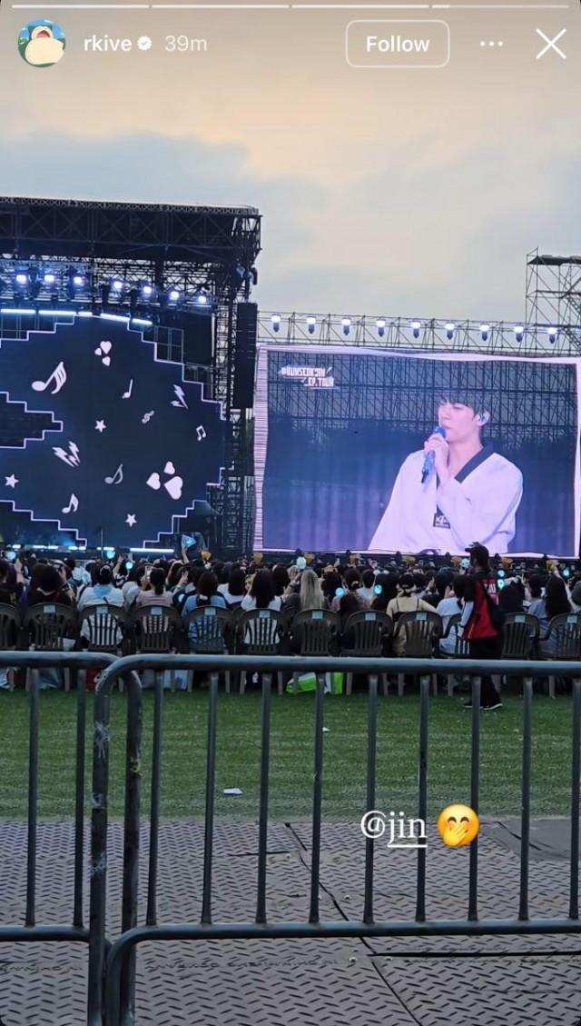 On Instagram, J-Hope, V, and RM all took to social media to share photos and videos taken from their fellow BTS member’s concert dubbed “RunSeokjin Ep. Tour.”