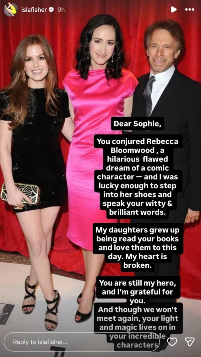 Isla Fisher pays tribute to Sophie Kinsella: 'I'm so brokenhearted that you are gone'