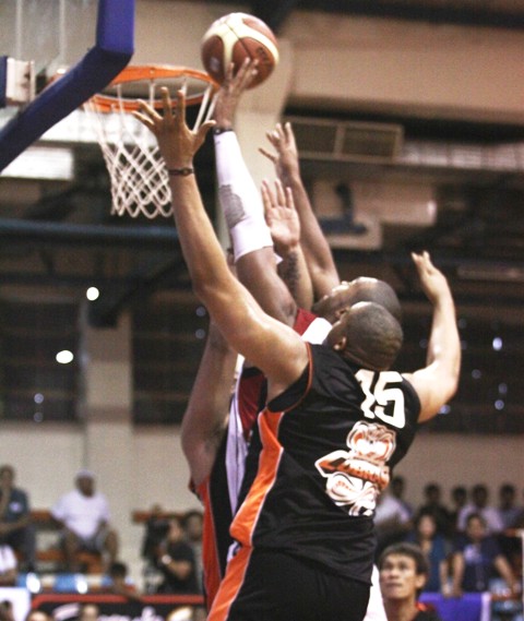 Philippine Patriots import Nakiea Miller (with ball) tries to score against two Bangkok Cobras defenders. Jeff Venancio