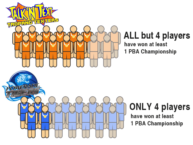 A veteran-heavy team going up against a rookie-laden squad rarely results in a surprise win by the young guns, barring injury or fatigue. It's thus no surprise that the Talk 'N Text Tropang Texters hold a 3-0 lead in their PBA All-Filipino Cup championship series against the Powerade Tigers with a chance to lift the trophy Friday. And yet, upon closer inspection, the two teams may not be that far off when it comes to years.