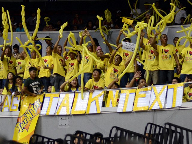 Talk 'N Text fans celebrate the Tropang Texters' Game Two win. Photo by KC Cruz