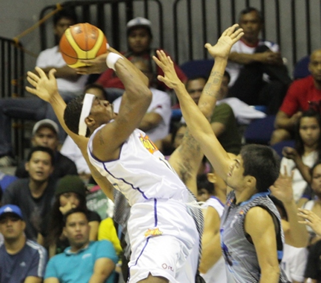 The Powerade defense made TNT import Paul Harris (left) work for his team-high 22 markers. Jeff Venancio