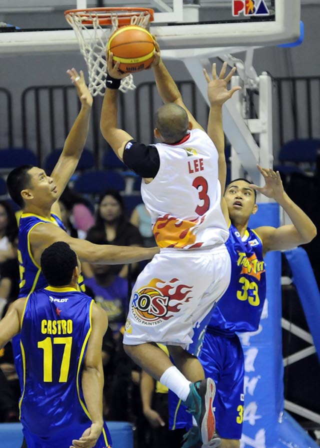 A Paul Lee lay-up early in the cut the Texters' lead to 10, 64-54, and ignited a 17-3 blast by Rain or Shine. Beau Belga's second triple in the quarter sliced the lead to a solitary point, 65-64, with five and a half minutes remaining, before Jimmy Alapag, Paul Harris, and Ranidel de Ocampo hit timely treys to keep the Elasto Painters at bay at the end of the third, 80-79.