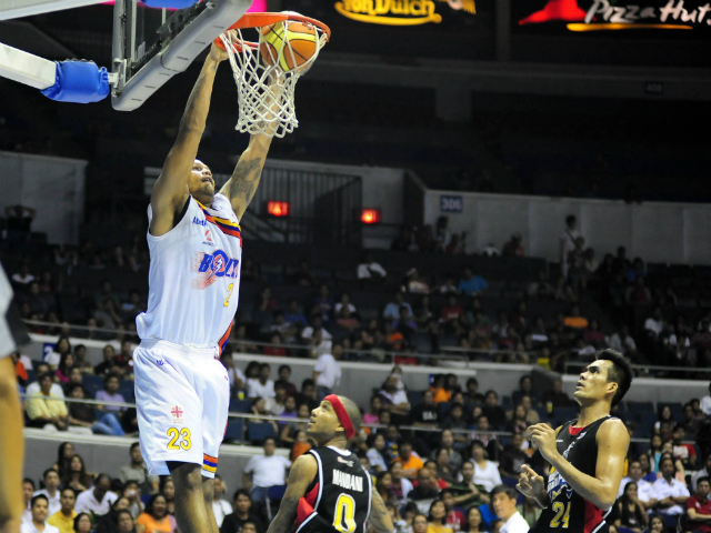 Sol Mercado hit clutch shots in the endgame while combining for 50 points with Mark Cardona, but it was Kelly Nabong's surprise performance that gave Meralco its win against GlobalPort, 101-92 on Friday at the Smart Araneta Coliseum. The win kept Meralco in the top four of the standings with a 6-5 record. GlobalPort on the other hand stayed mired at the bottom of the standings with a 1-10 card. "A very gratifying win after an emotional loss from Rain or Shine. I have to really ask help from my coaches. Luckily, I have a very solid coaching staff," said Meralco head coach Ryan Gregorio. "Great we were able to win again and solidify our spot at number four." The Bolts led for the first three quarters, before a Gary David jumper and a Rey Guevarra trey gave Batang Pier a slim lead at the start of the fourth period, 71-70, but Ronjay Buenafe led an 8-0 run for Meralco to re-establish a 78-71 advantage. Four more points from Guevarra, followed by a Vic Manuel conversion off the glass cut the lead to one, 80-79, with 7:01 to go, but Mark Cardona kept GlobalPort at bay. At the 4:16 mark, a David lay-up tied the game at 83, before Buenafe hit another trey followed by a Nabong layup made it 88-83. David got two more points at the other end, but Mercado would hit a shotclock-beating three, followed by a jumper at the top of the key to establish a ten-point lead, 93-83, with 1:59 remaining. Another quick reply form David followed by a pair of Guevarra free throws cut the lead to six, but GlobalPort failed to hit big shots at the end as Nabong ended the game with a slam for the final score. The rookie Nabong, who started at center for Meralco, contributed 18 points, 11 rebounds, two assists and two steals in 39 minutes. He in fact outplayed fellow starter rookie starter Cliff Hodge, who logged just 19 minutes due to foul trouble. GlobalPort got 33 points from Gary David and 20 from Rey Guevarra, but it wasn't enough for them to arrest their skid, as their losing streak now hit seven games. The Batang Pier lost despite out-rebounding Meralco 58-40, 18-9 in offensive boards. Both teams played sloppily, notching more than 20 errors each, but only the Bolts were able to capitalize, getting a 21-8 advantage in points off turnovers.