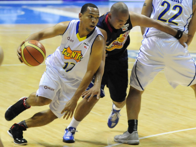 (Updated 9:30pm) After the Rain or Shine Elasto Painters cut an 18-point deficit to three, Larry Fonacier hit a dagger trey to hand his Talk n' Text Tropang Texters game one of the best-of-seven PBA Philippine Cup Finals series, 87-81, on Wednesday at the Smart Araneta Coliseum. The Texters, who hit 10 three-pointers, compared to just four by the Elasto Painters, are bidding to win three straight All-Filipino titles and hoist up the Perpetual Trophy. [Review the play-by-play of this game here] "We're just trying to win games. If we win by half a point, that's good enough for me," said Talk 'N Text head coach Norman Black. The Texters were up by as much as 18 before the Elasto Painters cut it to three with three minutes remaining. The number one team in the league then relied on clutch shots by Larry Fonacier and Jayson Castro for the much-needed separation to escape with the win.