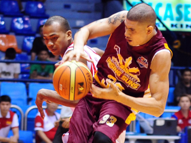 Cagayan Valley Rising Suns 83 - Jumbo Plastic Linoleum Giants 74 The Cagayan Valley Rising Suns shook off a tightly-fought first half to secure an 83-74 win over the Jumbo Plastic Linoleum Giants in the final game of the day's triple-header. The Rising Suns, finalists in the 2012-13 Aspirants Cup, notched back-to-back wins to improve to 2-1, while new club Jumbo Plastic sank to 1-4. The Giants led 31-30 at the end of the first half, and then stretched their lead to 39-30, but the Rising Suns engineered a 6-1 blast to go on top, 50-49, drawing a timeout from their foes. The quick break however didn't exactly help, as scores from Anthony Del Rio and Adrian Celada stretched their advantage to 58-55, a quarter left to play. In the fourth, back-to-back hits by Mark Cruz gave the Rising Suns a 10-point buffer, 65-55, which Eliud Poligrates extended to 77-63. Twin makes by Jul-Ashri Ignacio ate into Jumbo Plastic's deficit, and an and-one play from Aljon Mariano sliced it even further to 77-70, but with just over a minute left, charities from Ping Exciminiano gave his team enough of a buffer to pick up the victory. Eliud Poligrates led Cagayan with 17 points, two rebounds, two assists and three steals, while starters Adrian Celada and Ping Exciminiano combined for 27 points, six rebounds and six assists. Jul-Ashri Ignacio poured in 16 points for Jumbo Plastic, while Aljon Mariano and Elliot Tan accounted for 13 markers each, but it was not enough for the Giants to win their second game.