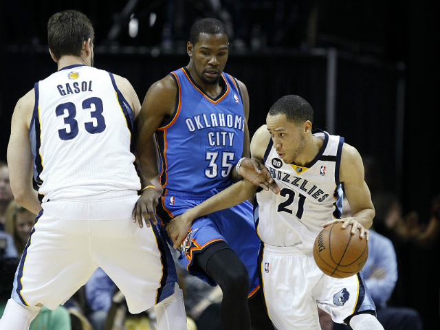 The Thunder sued for time, but Tony Allen swiped the inbounds pass from Fisher, forcing the Oklahoma City to foul to stop the clock. Marc Gasol split his charities for a two-possession buffer, 101-97, then after Durant missed anew, Tayshaun Prince free throws closed this one out.