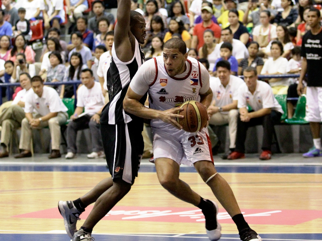 Jerick Cañada trimmed the lead with a triple at the 3:15 mark for a 28-26 count but Leo Avenido replied with a one-hander from the baseline. Brian Williams however raised the San Miguel lead to six with a tip-in off a Taulava miss.