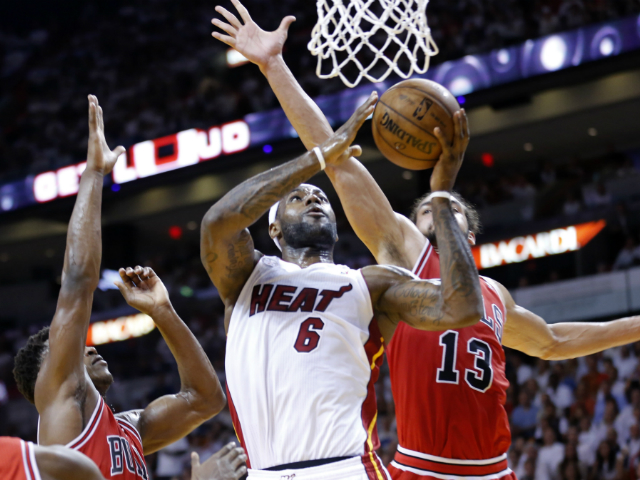 LeBron James (C) and his Heat will start the 2013-14 NBA season with a game against the Chicago Bulls. Joe Skipper/REUTERS
