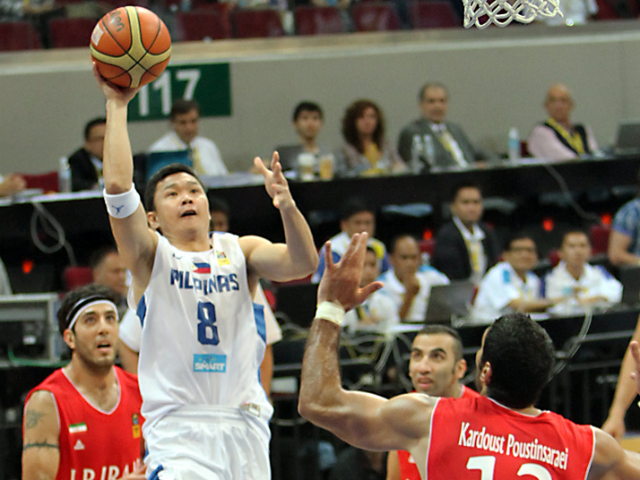 Mythical five member Jayson Castro (C) takes it strong into the gut of the Iranian defense. Nuki Sabio