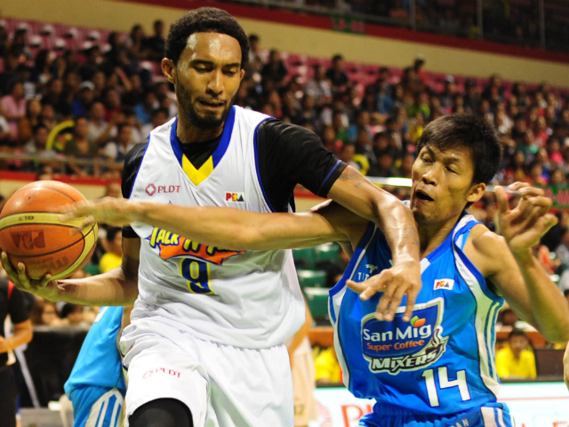 Marc Pingris (L) and Ranidel De Ocampo dueled late, but Pingris' San Mig Coffee Mixers were the ones who advanced to the next round. KC Cruz