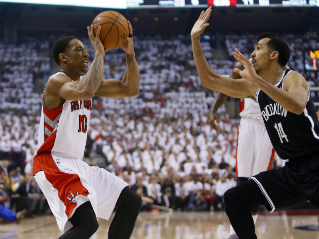 TORONTO - Guard DeMar DeRozan had 15 of his game-high 28 points in the fourth quarter to lead the Toronto Raptors to a 100-95 victory over the Brooklyn Nets in game two of their first-round playoff series at Air Canada Centre Tuesday night (Wednesday, PHL time).