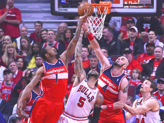 A three-pointer by Butler and jumper from forward Carlos Boozer brought Chicago back within 70-67. After the teams traded points, Washington took more than a minute off the clock when Gortat grabbed or tipped three straight offensive rebounds.