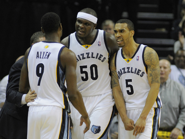 With Zach Randolph (C) already suspended, Tony Allen may be questionable for their game seven against the Thunder. Justin Ford-USA TODAY Sports / Reuters