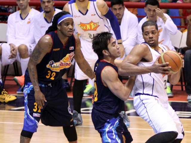 The Talk 'N Text Tropang Texters stepped it up late to defeat the Rain or Shine Elasto Painters, 83-81, in the 2014 PBA Governors' Cup on Wednesday at the Alonte Sports Arena in Biñan, Laguna.
