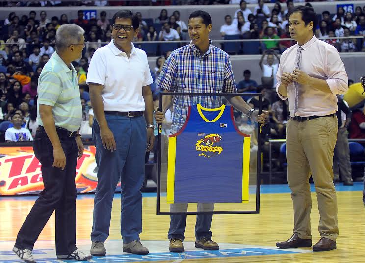 Rey Evangelista was honored by the Purefoods franchise before Sunday's Manila Clasico. KC Cruz