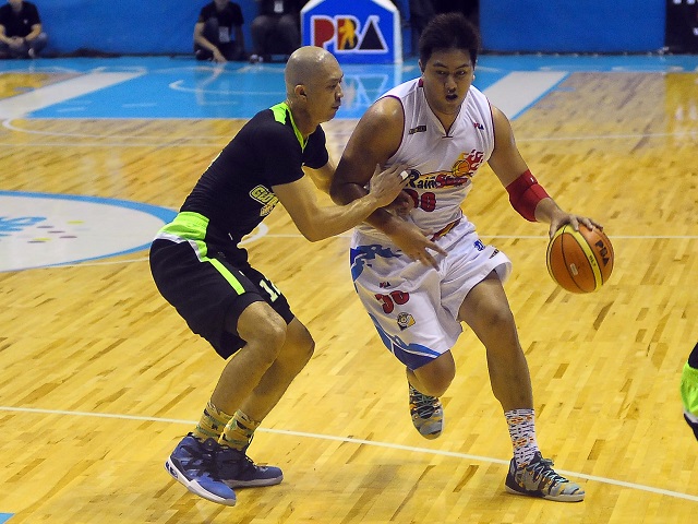 An active Jervy Cruz gave Rain or Shine a 23-20 lead at the end of the first quarter, 23-20. The Elasto Painters continued to rely on their big men in the second, as JR Quinahan, Raymond Almazan and Beau Belga all took turns draining shots. A Paul Lee jumper made it a 13-point game at the halg, 49-36.