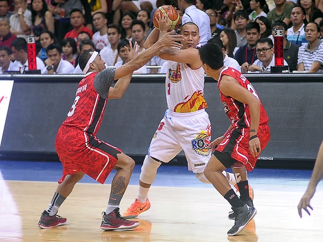 Paul Lee is swarmed by Calvin Abueva and RJ Jazul Photo by KC Cruz