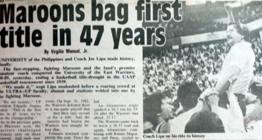 Lipa is better known among local basketball aficionados as the mentor of the last UP team to bring home a UAAP basketball crown. He also piloted an all-Filipino team that won a bronze in the 1986 Asian Games in Seoul, Korea.