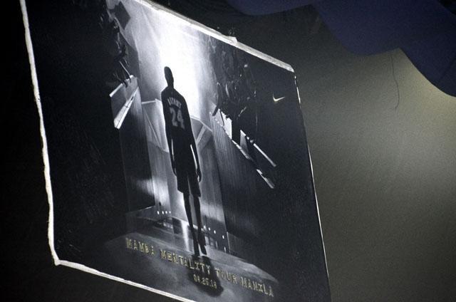 The Black Mamba was surprised with a painted tarpaulin of an iconic still from his "The Conductor" Nike commercial, which was already hanging from the rafters of the coliseum.
